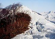 おまけにこの頃になると、朝のうちしっかり締まっていた雪面も緩み始め、一歩進む度に半歩滑り戻る様な感じがして気分的にも疲れる。また仙人窟岳から先の稜線の雪庇では、大きな亀裂が随所に見られ、緊張の連続であもった。危険な事が判っていても濃い藪に迂回路を取れず、あと数日もすれば崩れ落ちるであろうと思われる雪庇の、亀裂と亀裂の間を進んだ時など、思わず摺足で進んでしまった。